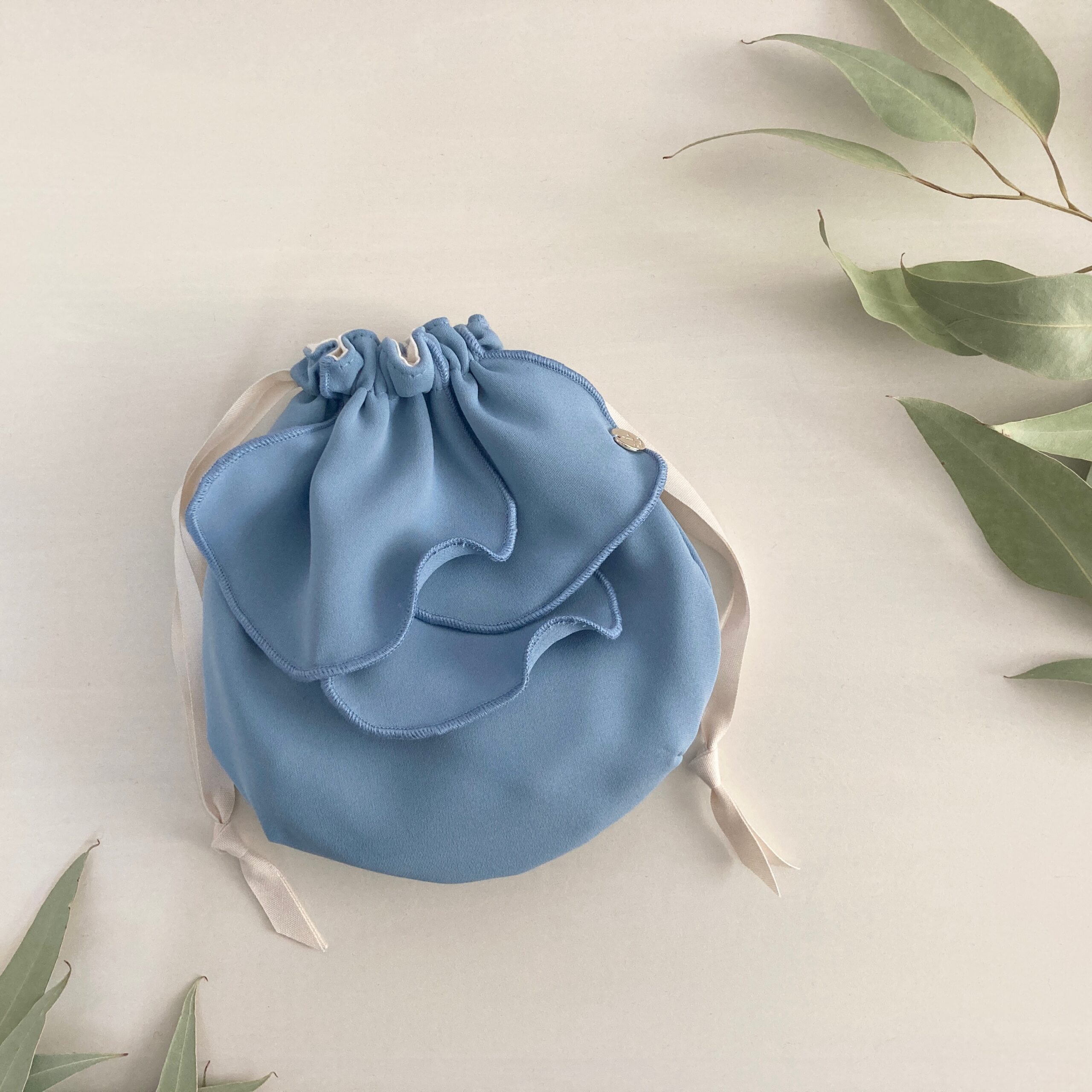☆NEWカラー☆ パウダリーダブルクロス 花びら巾着ポーチ スモーキーブルー